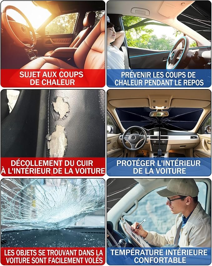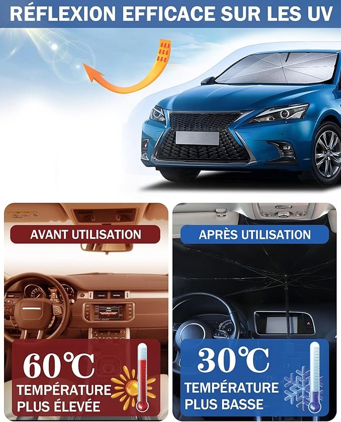 Parapluie Pare-Soleil de Voiture, Pare-Brise, intérieur 125 x 65 cm, Pliable avec Protection UV et Chaleur