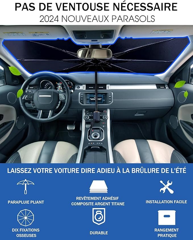 Parapluie Pare-Soleil de Voiture, Pare-Brise, intérieur 125 x 65 cm, Pliable avec Protection UV et Chaleur